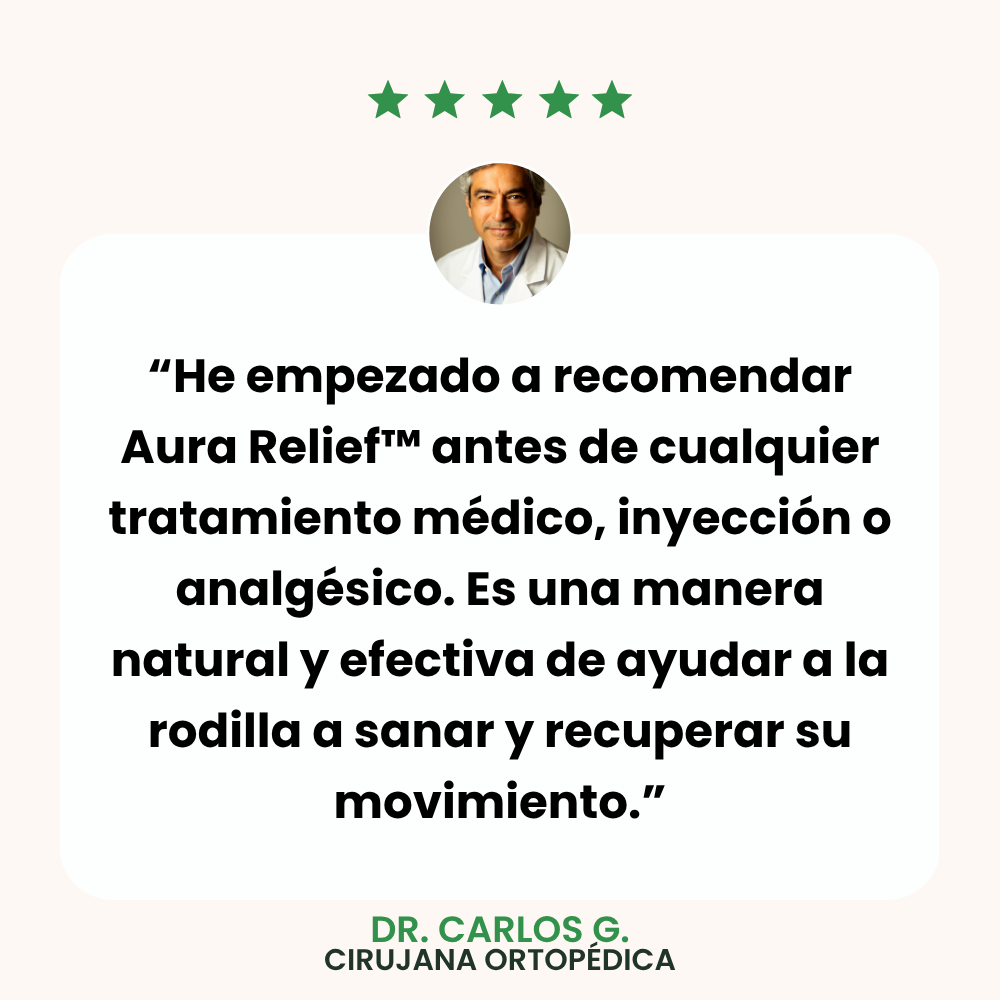 🟩 Al combinar estos 3 principios esenciales, Aura Relief™ proporciona un alivio inmediato del dolor crónico de rodilla.